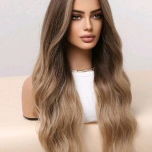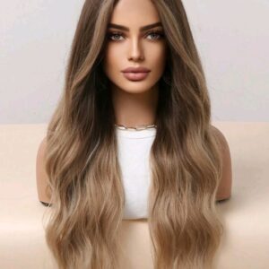 Дълга,обемна и стилна омбре перука от синтетичен косъм. Качествена изработка.Стои изключително естествено на главата.
